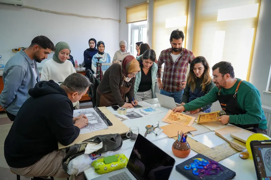 Baskı, resim, seramik, heykel ve video gibi farklı tekniklerin kullanıldığı çalıştayda, disiplinler arası etkileşimle özgün sanat eserleri üretildi.