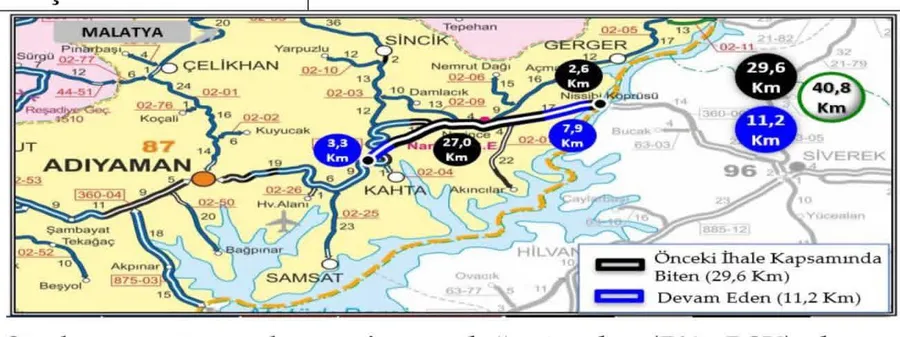 Adıyaman ve Kahta hattını modern ve kesintisiz ulaşımla buluşturacak olan Kahta Nissibi Köprüsü bağlantı yolları ve battı–çıktı düzenlemelerini kapsayan 40,8 kilometrelik proje hızla ilerliyor. Çalışmalar, projenin son etabı olan Ballı Viyadüğü üzerinde yoğunlaşmış durumda.