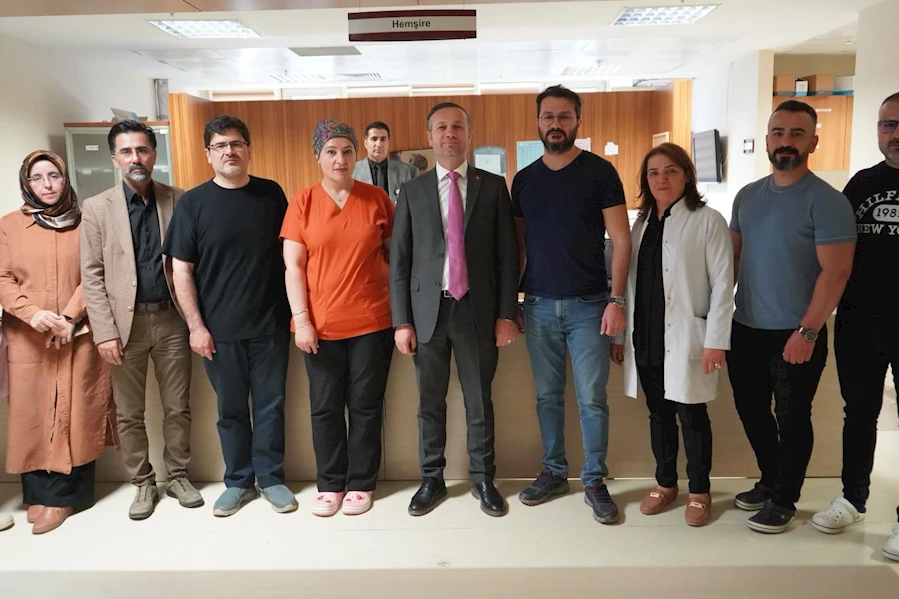 6 Şubat depremi sonrası ilk kornea nakilleri yapılan hastaları ziyaret eden Başhekim Doç.Dr.Kasım Turgut’a Başhekim Yardımcısı Dr.Öğr.Üyesi Ümmühan Yılmaz, Göz Hastalıkları Uzmanı Dr. Öğr üyesi Abdurrahman Bilen, Dr. Öğretim Üyesi Burak Ören, Sağlık Bakım Hizmetleri Müdürü Fahri Dağhan ve yöneticiler eşlik etti.