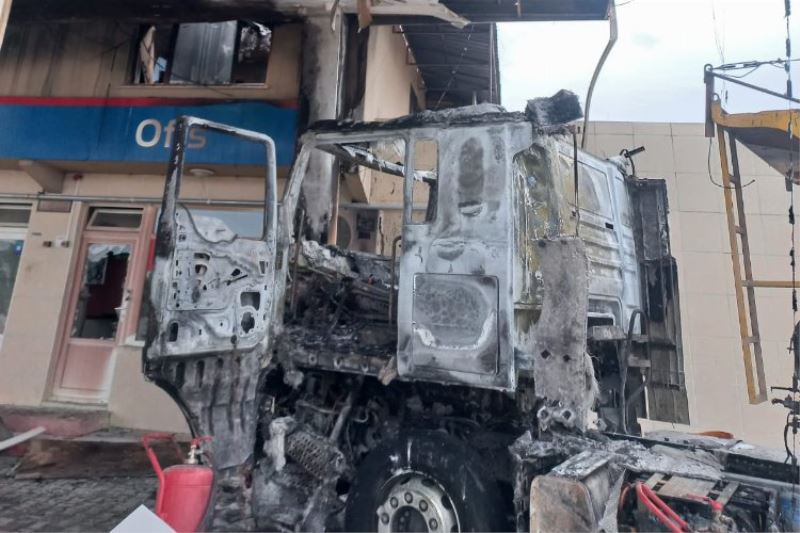 Alınan bilgiye göre, bir şirkete yük çektiği belirtilen şoför H.Y.'nin içinde uyuduğu sırada araçta başladığı sanılan yangın, kısa sürede benzin istasyonunun üst katındaki daireye de sıçradı.