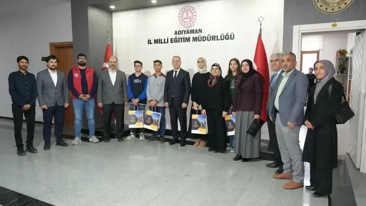 Çevreme Duyarlıyım, Değerlerime Sahip Çıkıyorum (ÇEDES) Projesi kapsamında görev yapan Adıyaman ÇEDES İl Öğrenci Sorumluları, İl Millî Eğitim Müdürü Ali Tosun’u makamında ziyaret etti.