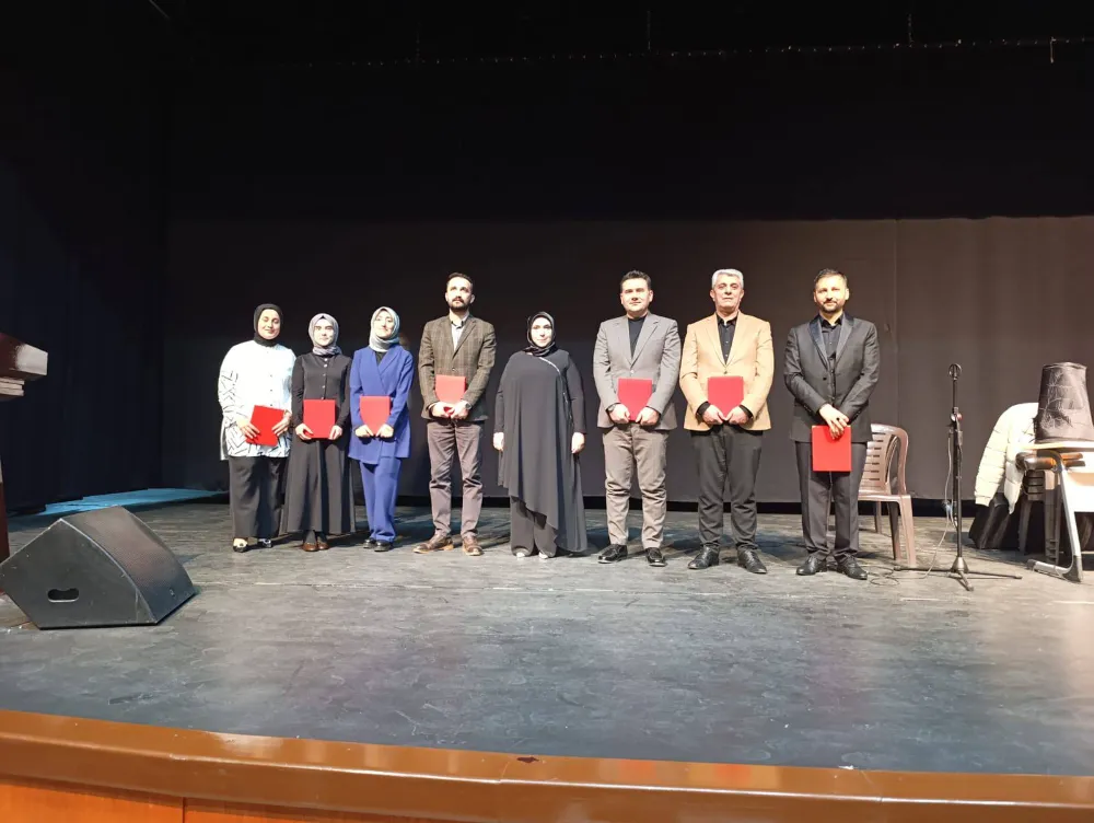 Gecede, eğitime ve farkındalık çalışmalarına sunduğu katkılardan dolayı İlçe Millî Eğitim Müdürü Lütfü Başlı’ya, Emine Gümüş tarafından plaket takdim edildi.