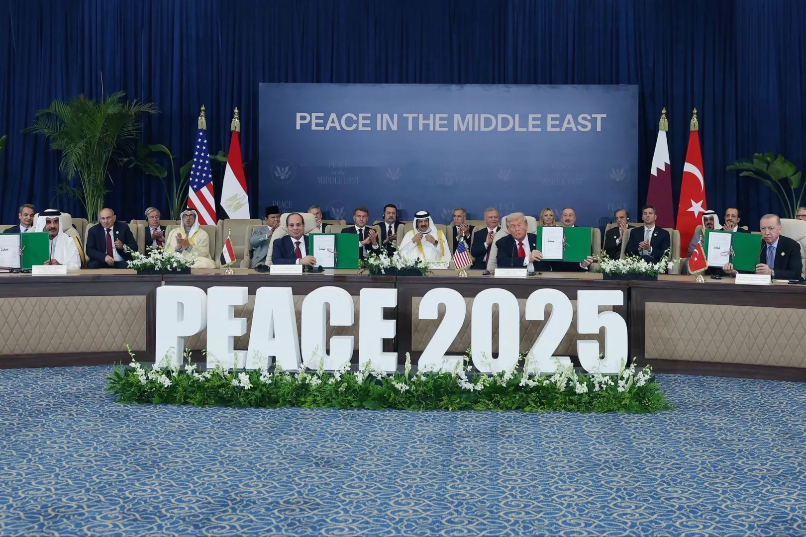 Cumhurbaşkanı Recep Tayyip Erdoğan, Mısır’da düzenlenen “Barış için Şarm El-Şeyh Zirvesi”ne katılarak, Gazze ateşkes mutabakatına ilişkin Niyet Beyanı’nı imzaladı. Zirve, Mısır Cumhurbaşkanı Abdulfettah es-Sisi ve ABD Başkanı Donald Trump’ın davetiyle gerçekleşirken, Cumhurbaşkanı Erdoğan, Türkiye’nin barış, adalet ve insani değerlere dayalı duruşunu yineledi.