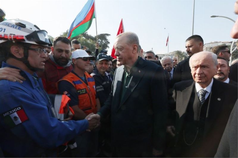 Cumhurbaşkanı Recep Tayyip Erdoğan ve MHP Genel Başkanı Devlet Bahçeli, bugün birlikte deprem bölgelerinden biri olan Hatay’a giderek çalışmaları yerinde inceledi.