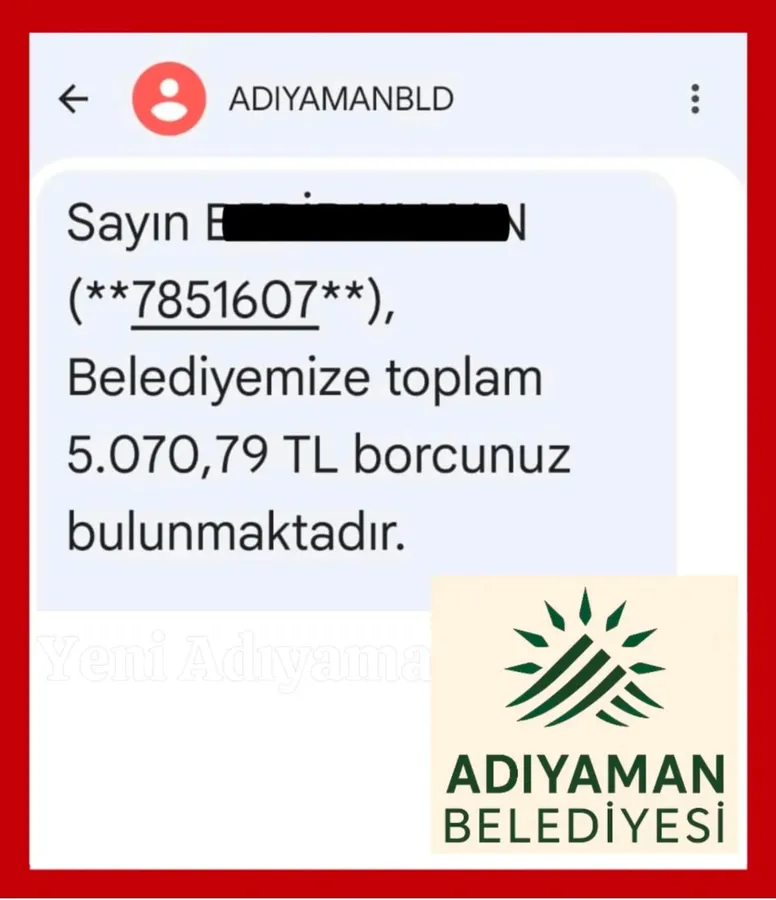 Adıyaman Belediyesi tarafından emlak, su, çevre temizlik vergisi gibi kalemlerde tahsil edilmeyen borçlar nedeniyle vatandaşlara kısa mesaj gönderildi. Ancak söz konusu mesajlar, depremde yakınlarını, evini veya işyerini kaybeden birçok vatandaşa da ulaşınca tepki topladı.