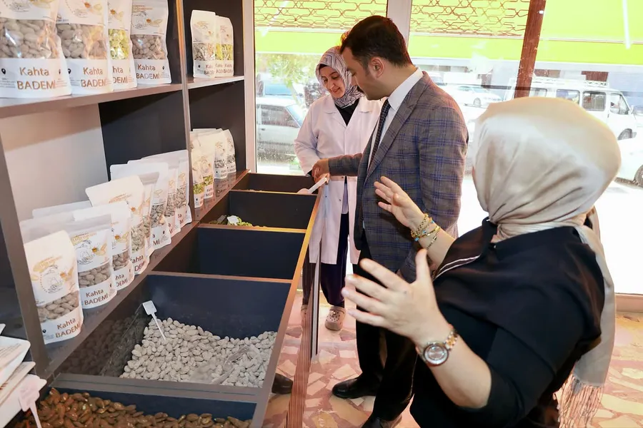 Adıyaman Kâhta İlçe Kaymakamı Sayın Muhammed Üsame Soysal, kadın girişimcilerin girişimiyle kurulan ve ilçede üretim faaliyetlerini sürdüren Badem Eli Kahta Kadın Kooperatifini ziyaret etti.