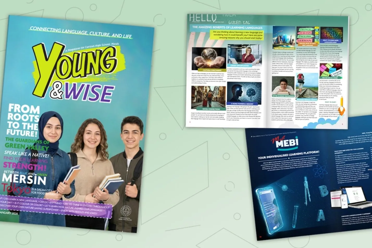 "Sizden Gelenler" bölümünde öğrencilerin kaleminden çıkan ve sayının teması etrafında şekillenen yazılara yer verilerek gençlerin düşüncelerini ifade etmelerine ve dergiye etkin katılım sağlamalarına imkân tanınıyor. Bu yönüyle Young and Wise, öğrencileri yalnızca okur değil, aynı zamanda içerik üreticisi olarak da sürecin merkezine alıyor. Gençlerin dünyasına temas eden konularla yabancı dil öğrenimini daha anlamlı hâle getirmeyi amaçlayan Young and Wise; okuma alışkanlığını destekleyen, değer edinimini önceleyen ve öğrenme becerilerini geliştiren yapısıyla öne çıkıyor. Üç aylık periyotlarla yayımlanacak derginin merak eden, kendini geliştiren ve çok