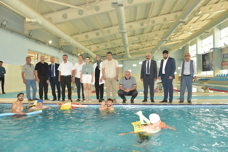 Yapımı tamamlanarak hizmete açılan Besni Yarı Olimpik Yüzme Havuzunda yüzme eğitimi alan çocuklarla bir araya gelen Milletvekili Özhan, çocuklara sporun önemini anlatarak antrenör ve eğitmenlere teşekkür etti.