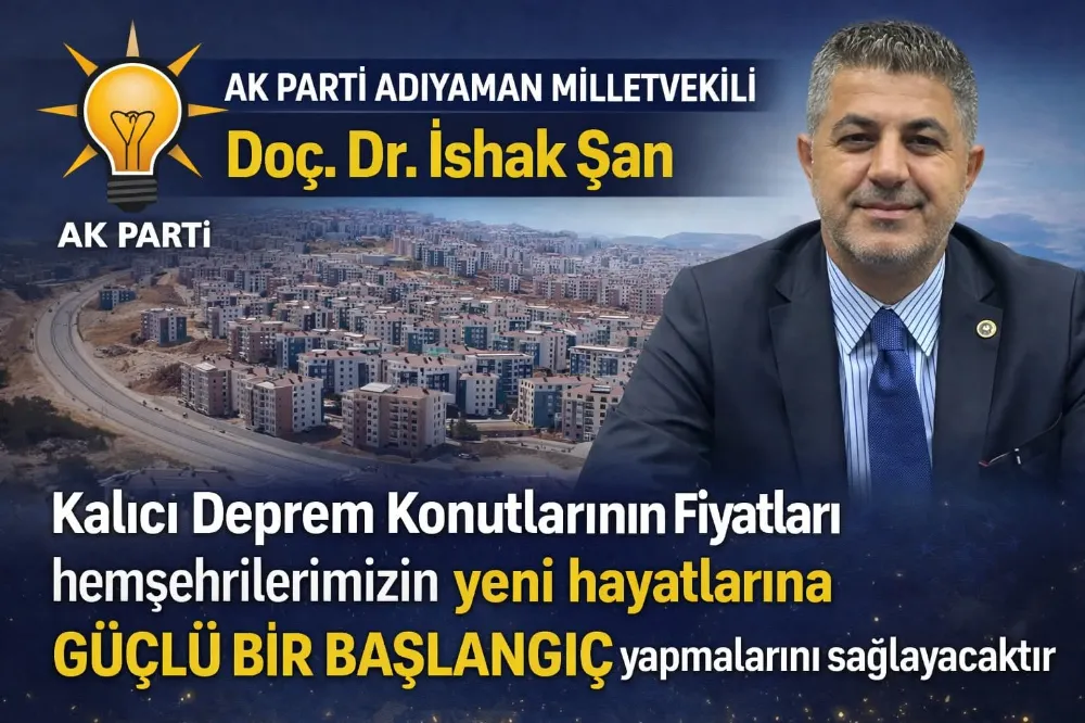 AK Parti Adıyaman Milletvekili Doç. Dr. İshak Şan, deprem konutlarına ilişkin açıklamalarda bulundu. Şan, Recep Tayyip Erdoğan tarafından duyurulan konut fiyatlarının depremzede vatandaşların yeniden ayağa kalkabilmesi açısından önemli bir destek sunduğunu ifade etti.