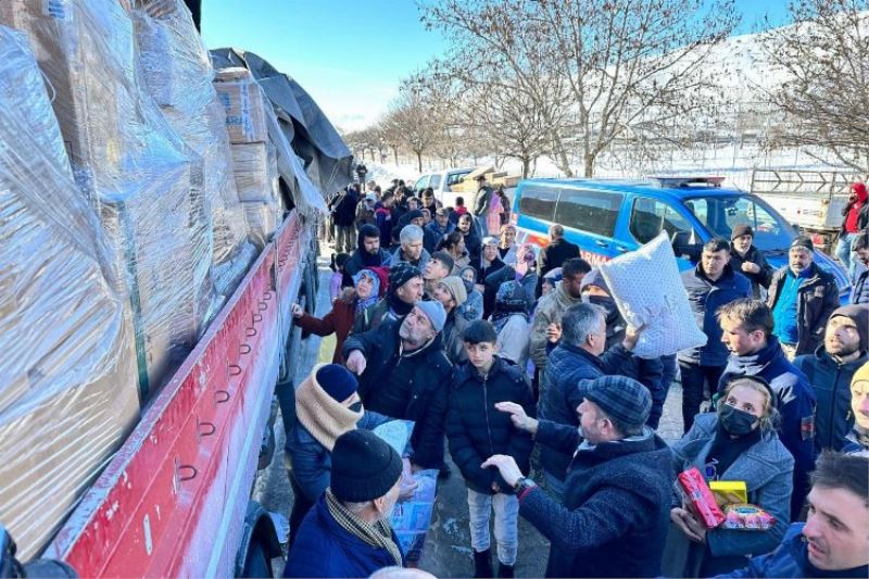 Büyükşehir Belediyesi ekipleri deprem bölgelerinde çalışmalarına devam ederken bölgeden gelen talepler doğrultusunda yardım malzemelerini göndermeyi sürdürüyor.