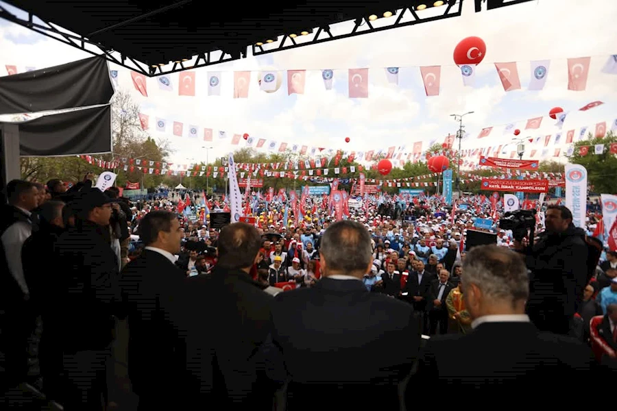 Kahveci, Gazi Mustafa Kemal Atatürk başta olmak üzere tüm şehit ve gazileri anarak başladığı konuşmasında, emekçilerin haklarını sonuna kadar savunacaklarını vurguladı.