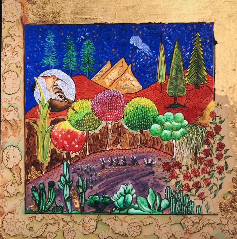 Eserlerinin çıkış noktasının minyatür tekniği olduğunu belirten Burhanoğlu, “Minyatür tekniğiyle tanışmam üniversite yıllarıma dayanıyor. Resimlerimi geleneksel minyatür tarzından ayrılıp çağdaş yorumlar katarak yapıyorum” dedi.