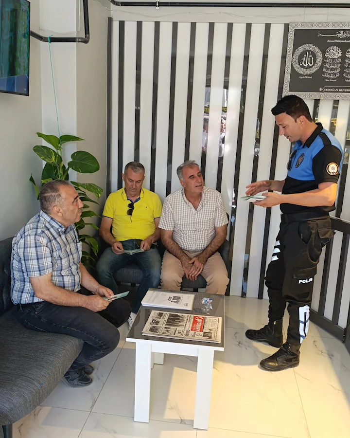 Polis ekipleri, sahada yürüttükleri bilgilendirme faaliyetleri kapsamında çeşitli konularda uyarılarda bulunarak broşür dağıttı.