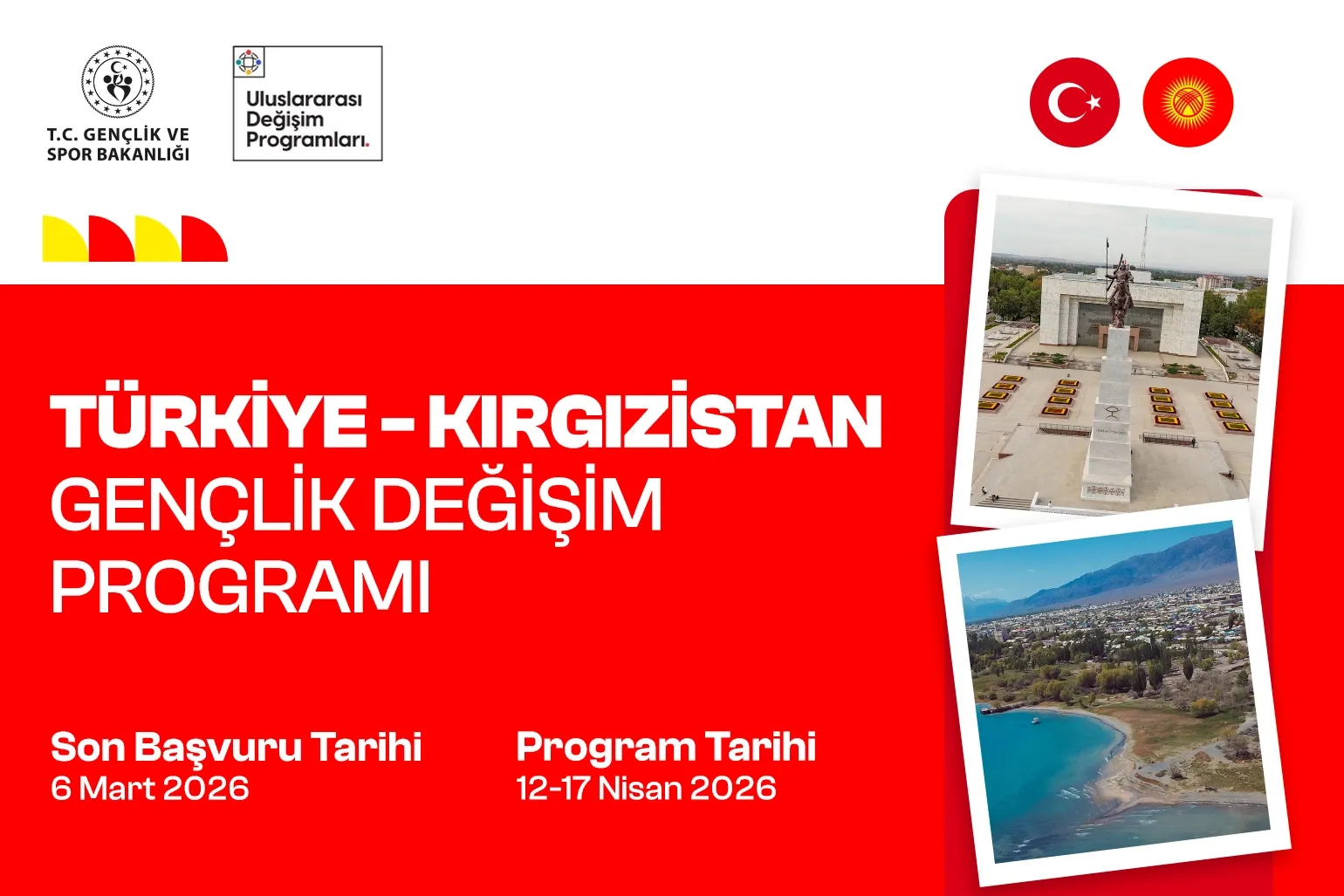 Gençlik ve Spor Bakanlığı, Türkiye–Kırgızistan Gençlik Değişim Programı için başvuruların başladığını duyurdu. Tüm masrafların Bakanlık tarafından karşılanacağı programda gençler, ata yurtta kültürel ve tarihi bir yolculuğa çıkacak.