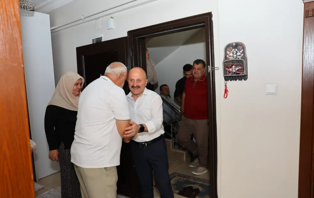 Vali Varol, İl Emniyet Müdürü Alper Uzman ve İl Jandarma Komutanı Albay Hikmet Uz ile birlikte, kahraman şehidimiz Fatih Doğan’ın babası Mehmet Doğan’ı evinde ziyaret etti.