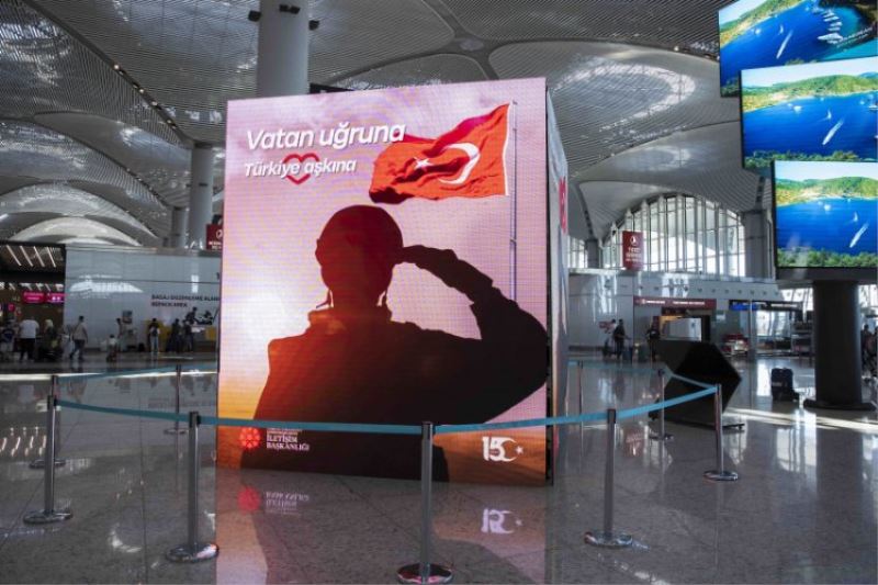 İstanbul Havalimanı'nda bulunan LED ekranlarda 15 Temmuz'da darbeye karşı direnişin ve mücadelenin anlatıldığı gösterimler de yapıldı.