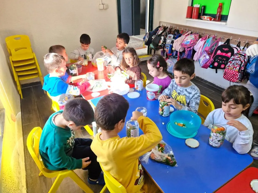 Öğretmenlerinin desteğiyle kavanozlara dikkatli bir şekilde malzemeleri yerleştiren minikler, eğlenceli dakikalar yaşarken, kendi kurdukları turşu ile kışa hazırlanmanın mutluluğunu yaşadı ve turşuları ailelerine hediye ettiler.