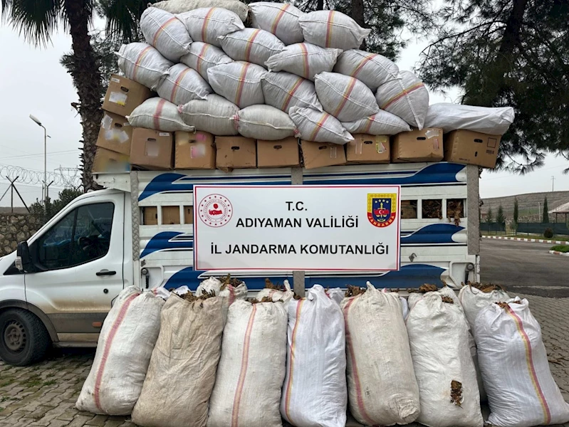 Adıyaman İl Jandarma Komutanlığı ekipleri tarafından Adıyaman- Şanlıurfa karayolunun 40'ncı kilometresinde uygulama noktası oluşturuldu. Jandarma ekipleri tarafından durumundan şüphelenerek durdurulan kamyonette yapılan aramada piyasa değeri 300 bin TL olan 3 ton 710 kilogram kaçak yaprak tütün ele geçirildi. Piyasaya sürülmek istenen tütüne el konulurken E.B. ve M.Y., gözaltına alındı. Gözaltına alınan şüpheliler sorgulanmak üzere jandarmaya götürüldü.