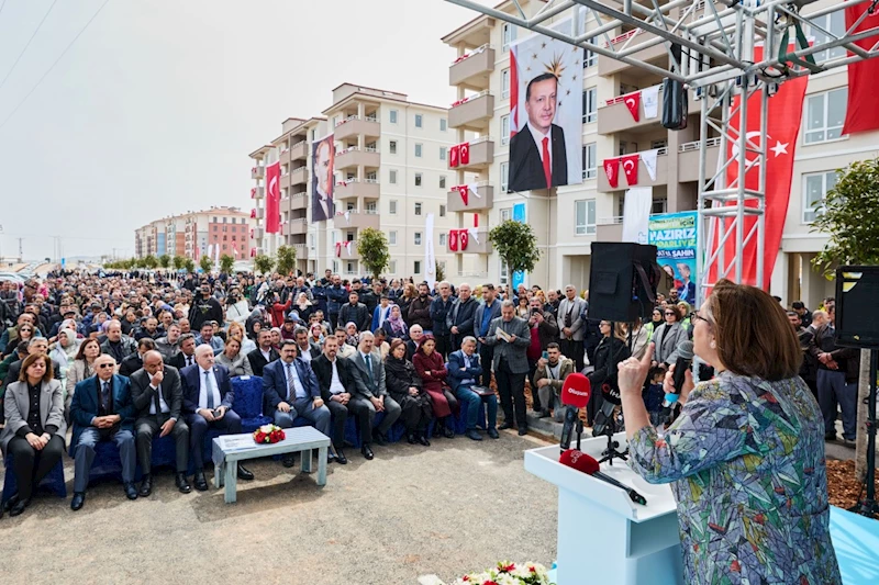 Anahtar teslim töreninde konuşan Gaziantep Büyükşehir Belediye Başkanı Fatma Şahin, hiç kimseyi ayrıma maruz bırakmadan çalıştıklarını, eğitim, sağlık, emniyet ve adalette önce insan dedik aktararak şunları söyledi:“Belediye bünyesinde sorun çözme kapasiteni güçlendirmek gerekiyor. Bazen bu da yavaş kalıyor ve bunu da çözmek için Gazi Konut’u kurduk. İşi ehline verip adaletli davranmayı öncelik edindik. Bu memleketin en büyük iki sorunu var konut ve trafik. Büyüyoruz ve irileşmeden sağlıklı büyümek lazım. Bunun yolu şehir planlaması. Ne kadar kişi yaşayacaksa bir alanda ona göre okul, yeşil alan, camii, sosyal donatı, GASMEK planlanıp yapılıyor. Yaşam kalitesini yükseltip vatandaş memnuniyeti arttıracak çalışma yapmak gerekiyor. İşte konut meselesine böyle baktık biz. 6 Şubat Depremleri sonrası bizim konut açığımız daha da arttı. Bunu hızlı bir şekilde toparlamak gerekiyordu. 10 bin konut için 60 bin konut talebi var. Bu arz talebi dengelememiz lazım. Geldiğimiz noktada anahtarları alacaksınız içeri gireceksiniz sizlerle beraber bende çok heyecanlıyım. Bu şehir için yapacak çok işimiz, sevdamız, hayallerimiz var. Ananın, babanın, gencin, yaşlının mutlu olduğu, geleceğe endişeyle bakmadığı bir Gaziantep kuracağız.”