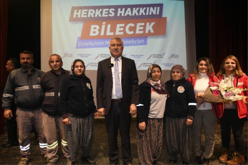Adana Büyükşehir Belediyesi Tiyatro Salonu’nda da işçilere promosyon müjdesi veren Başkan Zeydan Karalar, işçi sayısına göre kıyaslandığında 24 bin liralık rakamın bir rekor olduğunu kaydetti.