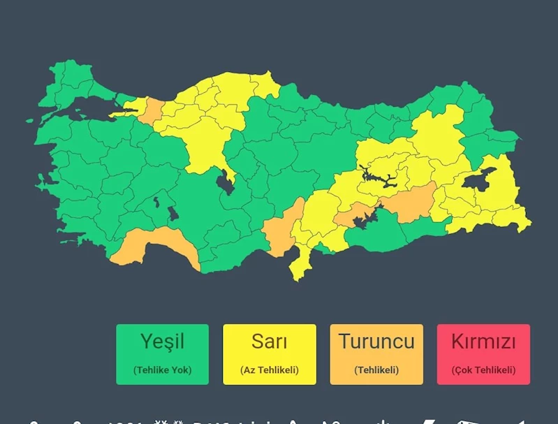 Meteoroloji'den alınan son bilgilere ve yapılan değerlendirmelere göre; Antalya, Sakarya, Adana, Adıyaman ve Diyarbakır illerinde turuncu yağış uyarısı yayımlandı.