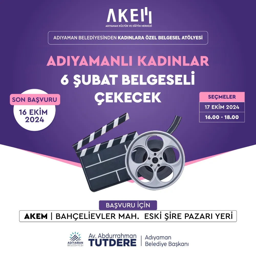 Adıyaman Belediye Başkanı Abdurrahman Tutdere, projeye ilişkin yaptığı açıklamada, “Bu atölyeyle kadınların yaratıcılığını desteklerken, şehrimizin yaşadığı büyük acılara dair kalıcı bir eser bırakacağız. 6 Şubat depremleri, kadınların gözünden bir belgeselle tarihe not düşülecek.” ifadelerini kullandı