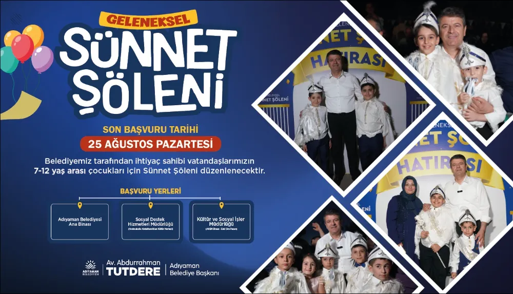 Adıyaman Belediye Başkanı Abdurrahman Tutdere, programla ilgili yaptığı açıklamada, “Çocuklarımızın mutluluğunu paylaşmak, onların özel günlerinde yanlarında olmak bizim için büyük bir onur. Belediye olarak, özellikle ihtiyaç sahibi ailelerimizin çocuklarının bu önemli günlerinde hem sağlık açısından güvenli hem de mutlulukla hatırlayacakları bir ortam sunmayı amaçlıyoruz. Tüm hemşehrilerimizi bu anlamlı etkinliğe davet ediyor, çocuklarımızın sevincini hep birlikte yaşamayı diliyorum.” dedi.