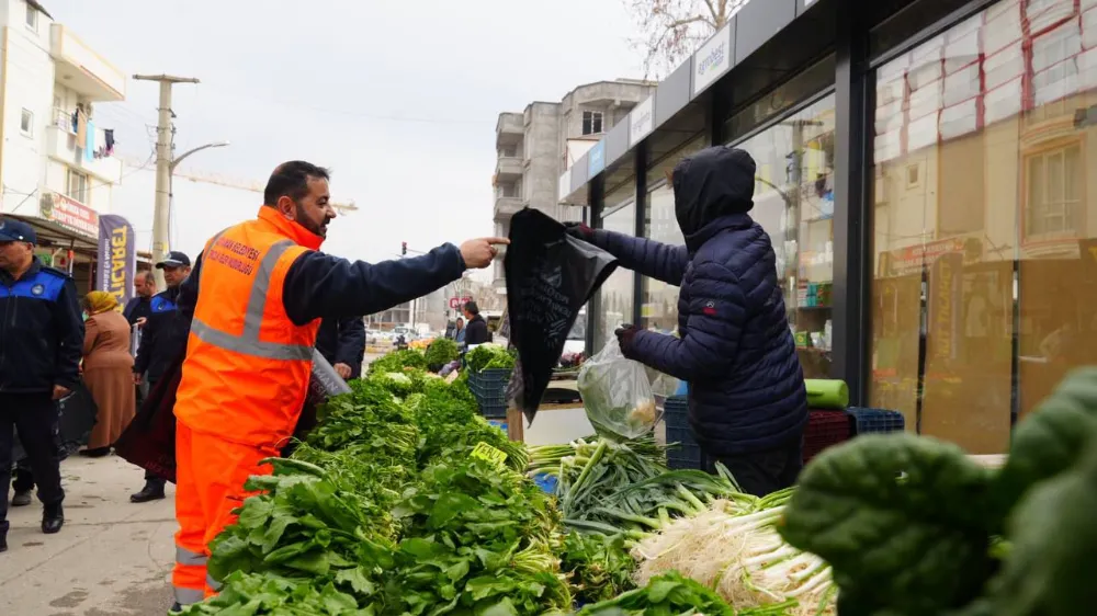 Adıyaman Belediyesi Zabıta Müdürlüğü ile Temizlik İşleri Müdürlüğü ekipleri tarafından pazarcı esnafına çöp poşetleri dağıtılırken bir yandan da çöplerin düzenli olarak poşetlenmesi konusunda uyarılar yapıldı.