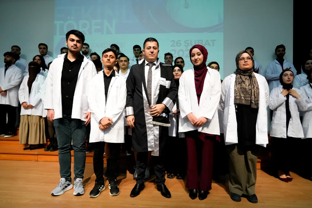 Konuşmaların ardından öğretim üyeleri, tıp fakültesine yeni başlayan 215 öğrenciye beyaz önlüklerini giydirdiler.