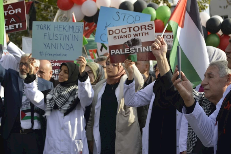Toplanan kalabalık adına açıklama yapan Doktor Hüseyin Ali Tamer, "İşgalci İsrail'in, Filistin'de on yıllardır devam ettirdiği sistematik işgal ve zulüm, 7 Ekim'den bu yana soykırımdan başka hiçbir kelimeyle anlatılamayacak boyutlara ulaşmakta ve Gazze'de sivil, hasta, hekim, çocuk, kadın fark etmeksizin büyük bir katliam bütün dünyanın gözü önünde devam etmektedir." dedi.