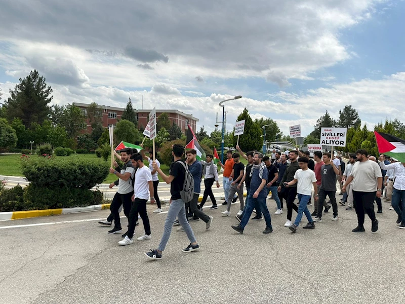 Üniversite öğrencileri ellerinde Filistin bayrakları ve pankartlarla Filistin’deki halka yönelik saldırılara dikkat çekerek slogan attı. Çok sayıda öğrencinin katılımıyla gerçekleşen yürüyüşte öğrenciler, “Çocuklar ölürken susulmaz” pankartlarıyla İsrail’e karşı sert şekilde tepki gösterdi.