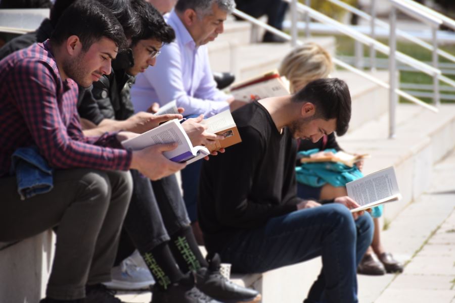 Etkinlikler kapsamında Türkiye’nin 81 ilindeki tüm kurum ve kuruluşlarda aynı gün ve saatte gerçekleştirilen kitap okuma etkinliğinde katılımcılar 12.30-13.00 saatleri arası Üniversite Kütüphanesinden temin ettikleri kitapları okudular.