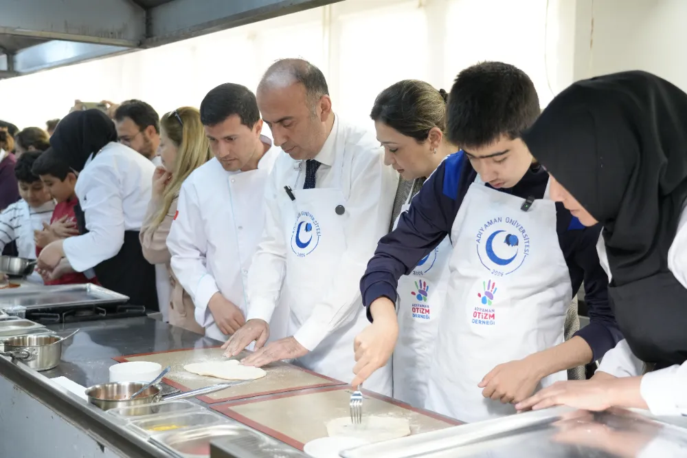 Adıyaman Üniversitesi Aşçılık Bölümü akademisyenleri ve öğrencilerinin katılımlarıyla düzenlenen etkinlikte, otizmli çocuklar üniversite öğrencileriyle birlikte mutfağa girdi.
