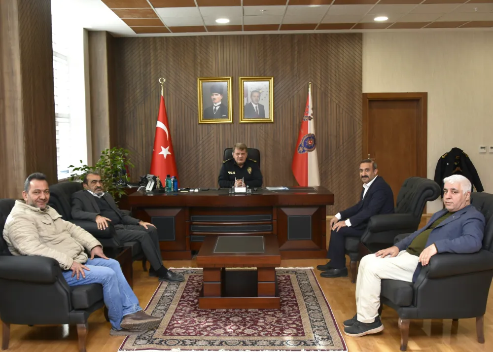 Adıyaman Gazeteciler Cemiyeti (AGC) Başkanı Zeki Dişkaya ve beraberindeki heyet, Adıyaman İl Emniyet Müdürü Alper Uzman’ı makamında ziyaret etti. Ziyarete, AGC Yönetim Kurulu üyelerinden Mahmut Hallaç, Ramazan Yavuz ve Necmettin Gündüz de katıldı.