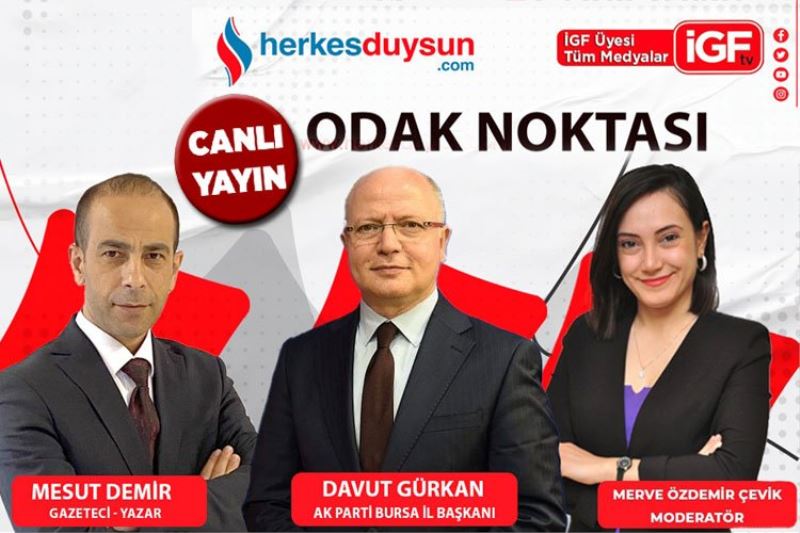 BURSA (İGFA) – AK Parti Bursa İl Başkanı Davut Gürkan, İGF TV ve Herkes Duysun TV’nin ortak yayınında "Odak Noktası" programına konuk oldu.