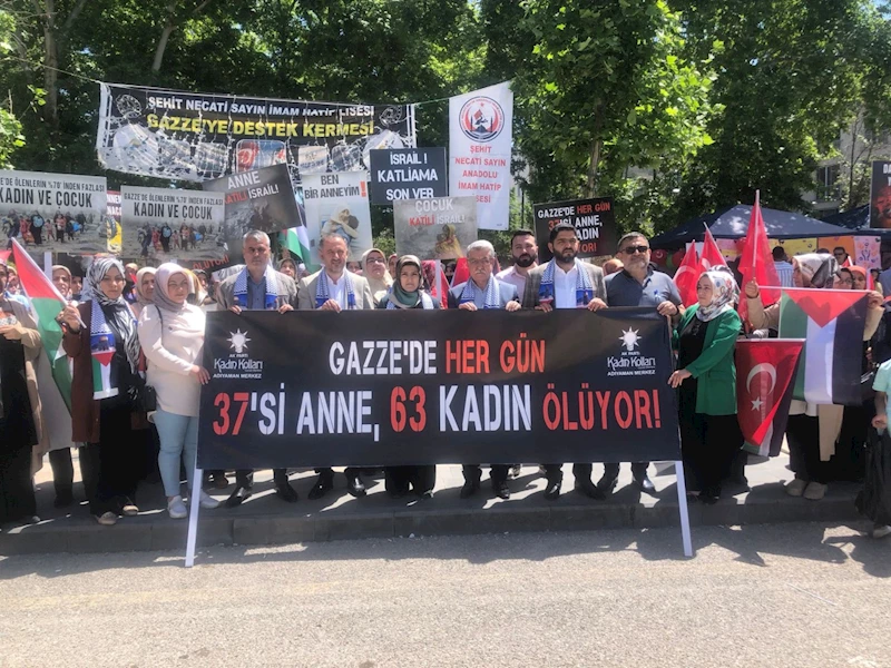 Toplanan kadınlar adına açıklamada bulunan AK Parti Adıyaman İl Kadın Kolları Başkanı Saliha Diler,"Pazar günü anneler günü. Günlerdir her yerde tatlı bir telaş yaşanıyor. Anneler günü, öksüzlerin ve evladını kaybeden annelerin de ağır imtihanı… fakat bir yandan da dünyanın orta yerinde, yanı başımızda Filistin’de, Gazze’de, Refah’ta yaşanan soykırım nedeniyle anne olmak hiç bu kadar zor olmamıştı. Biz bugün okuldan gelecek çocuklarımızı, Gazzeli anneler ise çocuklarına verecek bir lokma ekmeği bekliyor. Bizler karışmasın diye çocuklarımızın defterlerine, kitaplarına isim yazarken, Gazzeli anneler ise cesetleri teşhis edilebilsin diye çocuklarının kollarına isim yazıyor. Bir kadın, bir anne olarak çok net ifade ediyorum: her can tek, her can biricik ve “bir cana kıyan tüm insanlığa kıymış gibidir”. Filistin Sağlık Bakanlığının 5 Mayıs’ta yaptığı açıklamaya göre; İsrail'in 7 Ekim'den bu yana Gazze Şeridi'ne düzenlediği saldırılarda 34 bin 683 kişi öldü, 78 bin 18 kişi yaralandı. Birleşmiş milletler kadın biriminin raporuna göre Gazze’de 9 bin kadın öldü. Günde ortalama 63 kadın hâlâ ölüyor ve bunların 37’si ise anne. Kayıp ve akıbeti bilinmeyen kadınların sayısı 2 bin 100, peki ya sağ kalan ve yaşam savaşını sürdürmeye, çocukları için hayata tutunmaya çalışan kadınlar, anneler, Filistin’de sağlık sisteminin çökmesi nedeniyle yaklaşık 60 bin hamile kadın risk altında. her gün 180 anne ölümle burun buruna doğum yapıyor. Ne diyordu Gazzeli anne? “ben 6 çocuk doğurmakla yükümlüyüm. çünkü 2’sini İsrail öldürecek, 2’si eve ekmek getirmek için çalışacak, 2’si de okusun ki ülke için işe yarasın.” Ya anne olduğunu göremeden, karnında bebeği ile ölen kadınlar, ölen annesinin bedeninden ameliyatla alınan bebekler. Zor şartlar, ölümle burun buruna yaşamak ve yetersiz beslenme nedeniyle erken doğum yapan, sütü kesilen anneler. Gazze’deki her 5 kadından 4’ü, aile bireylerinden en az birinin üst üste iki öğün yiyemediğini ifade ediyor. Çocuklar, annelerinin gözü önünde eriyor. Cumhurbaşkanımız Recep Tayyip Erdoğan’ın birleşmiş milletler ve pek çok uluslararası platformda haykırdığı gibi “savaşın da bir ahlakı, hukuku vardır. Sivillerin hedef alındığı saldırıyı haklı gösterecek tek bir neden dahi olamaz.”dedi.