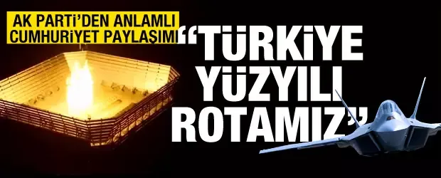 AK Parti de sosyal medya hesabından Cumhuriyet'in 100. kuruluş yıl dönümü ile ilgili bir paylaşımda bulundu. Paylaşımda Türkiye Cumhuriyeti'nin Mustafa Kemal Atatürk'ün gösterdiği hedef doğrultusunda attığı dev adımlara ait görüntüler yer aldı.