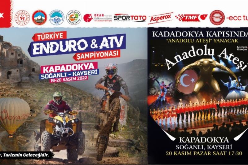 Kayseri Büyükşehir Belediyesi ve Kayseri Valiliği işbirliğinde kentin turizmine büyük katkı sağlayacak Soğanlı bölgesinde, bu kapsamda 19-20 Kasım’da Türkiye Enduro ve ATV Şampiyonası gerçekleşecek.