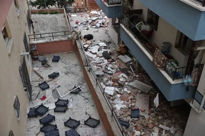 Patlamanın etkisiyle çevre binalarda da hasar oluştu. İhbar üzerine bölgeye sevk edilen ekiplerin çalışması sürüyor.