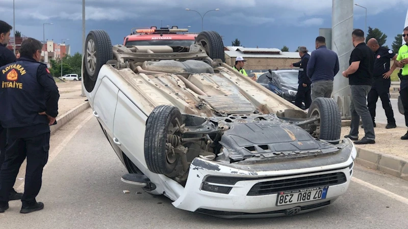 ADIYAMAN (PHA) - Adıyaman Eğitim ve Araştırma Hastanesi bölgesindeki kavşakta direksiyon hakimiyetini kaybeden sürücü takla atarak yaralandı.