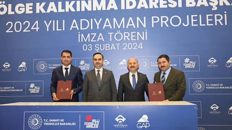 Sanayi ve Teknoloji Bakanı Mehmet Fatih Kacır'ın katılımıyla Sanayi ve Teknoloji Bakanlığı GAP Bölge Kalkınma İdaresi Başkanlığının desteğiyle Adıyaman Organize Sanayi Bölgesi Toplantı Salonunda 2024 yılında Adıyaman’da uygulanacak projelerin imza töreni düzenlendi.