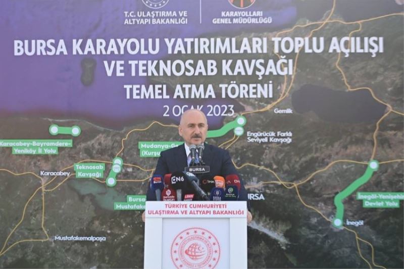 BURSA (İGFA) - Ulaştırma ve Altyapı Bakanı Adil Karaismailoğlu, Bursa’da karayolları yatırımları toplu açılış ve TEKNOSAB Kavşağı temel atma törenine katıldı.