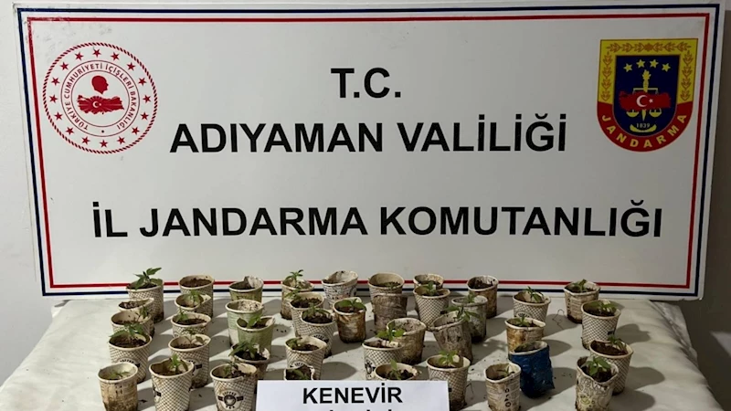 ADIYAMAN (PHA) - Adıyaman'da kenevir ekimiyle ilgili olarak İl Jandarma Komutanlığı ekipleri tarafından yapılan bir operasyonda bardak içinde ekilmiş kenevir bitkileri ele geçirildi.