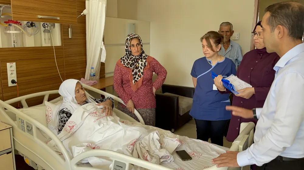 Adıyaman Eğitim ve Araştırma Hastanesi'nde yatan hasta servislerinde incelemede bulunan ve hastaların sağlıklarıyla ilgili tedavi süreçlerini takip eden Başhekimi Doç. Dr. Mehmet Şirik'e Hastane Müdürü Hulisi Fırat, Hastane Müdür Yardımcısı Fahri Dağhan ve birim sorumluları eşlik etti.