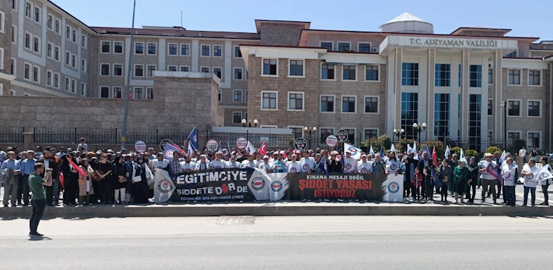 Adıyaman Valiliği önünde düzenlenen basın açıklamasına Eğitim-Bir-Sen Adıyaman Şubesine bağlı merkez ve ilçelerden gelen yönetici ve üyeler katıldı.