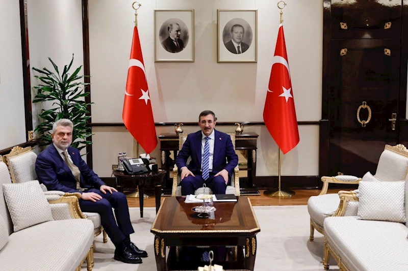 Bir dizi ziyaret ve temaslarda bulunmak üzere Ankara’ya giden Kahramanmaraş Büyükşehir Belediye Başkanı Fırat Görgel, Cumhurbaşkanı Yardımcısı Cevdet Yılmaz ile bir araya geldi. Cumhurbaşkanı Yardımcısı Yılmaz’ı makamında ziyaret ederek yeni Kahramanmaraş’ın imarı ve inşası noktasında yürütülen çalışmalara ilişkin son bilgileri aktaran Başkan Fırat Görgel, şehre yönelik taleplerini de arz etti. Kabulleri ve Kahramanmaraş’a gösterdiği ilgi için Cumhurbaşkanı Yardımcısı Cevdet Yılmaz’a şükranlarını sunan Başkan Görgel, “Cumhurbaşkanı Yardımcımız Sayın Cevdet Yılmaz’ı ziyaret ederek şehrimizdeki son durumu paylaştık, yeni Kahramanmaraş noktasında istişarelerde bulunduk. Sayın Cumhurbaşkanı Yardımcımıza şehrimizin taleplerini arz ettik. Nazik kabulleri, şehrimize göstermiş olduğu ilgi ve destekleri için Cumhurbaşkanı Yardımcımız Sayın Cevdet Yılmaz’a şükranlarımızı sunuyoruz” dedi.