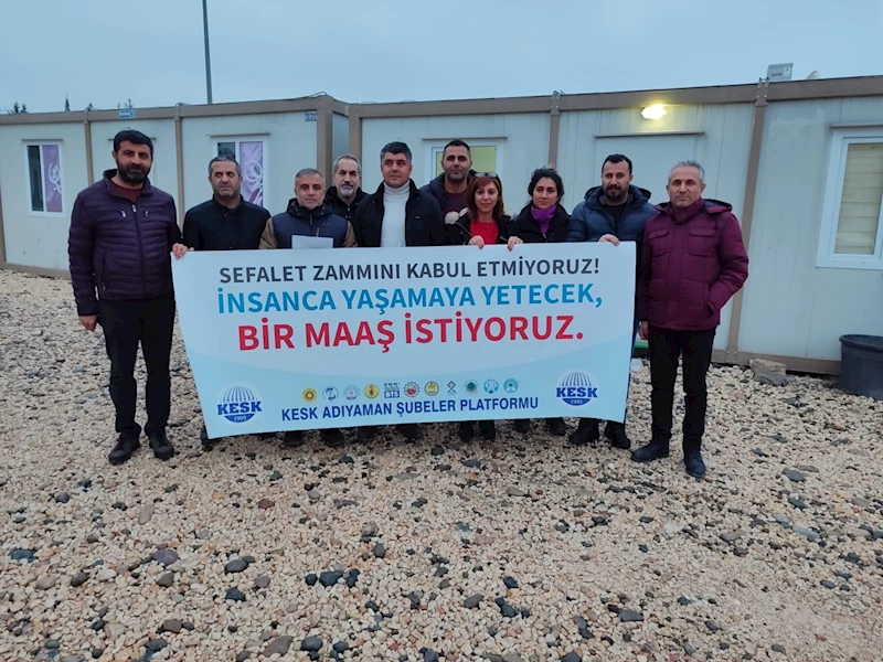 KESK Adıyaman Şubeler Platformu Konteyner önünde toplanan üyeler, TÜİK verilerine tepki gösterdiler. Toplanan üyeler adına açıklama yapan KESK Adıyaman Şubeler Platformu Adına Eğitim Sen Şube Başkanı Zeynal Polat,"Zam yağmuru ile başlayan ve bu yağmurun her ay şiddetlenerek kasırgaya dönüştüğü zorlu bir yılı geride bıraktık.