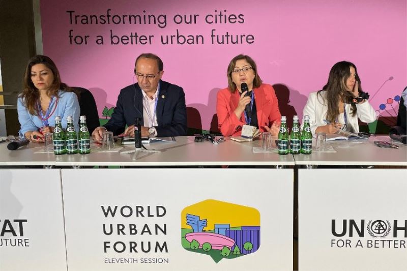 Gaziantep Büyükşehir Belediye Başkanı Fatma Şahin, Polonya’nın Katowice kentinde düzenlenen 11’inci Birleşmiş Milletler (BM) Habitat Dünya Şehircilik Forumu’ndaki "Kadın Liderliğindeki Şehirleri Destekleyen, Kadın Liderliğindeki İşletmeler" forumunda konuşma yaptı.