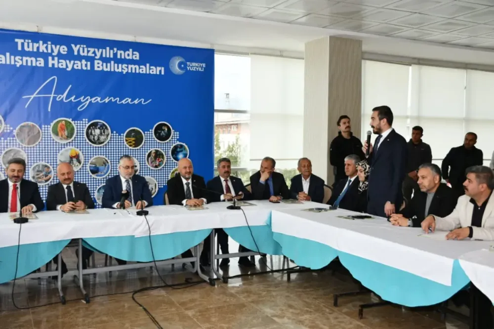 Bir dizi programlara katılmak üzere Adıyaman’a gelen Çalışma ve Sosyal Güvenlik Bakanı Prof. Dr. Vedat Işıkhan, Adıyaman Valisi Dr. Osman Varol, Çalışma ve Sosyal Güvenlik Bakan Yardımcısı Ahmet Aydın, Milletvekilleri Doç. Dr Resul Kurt, Doç.Dr İshak Şan, Mustafa Alkayış, Hüseyin Özhan ve Belediye Başkanı Süleyman Kılınç ve ATSO Başkanı Mehmet Torunoğlu ile birlikte Adıyaman Organize Sanayi Bölgesinde "Türkiye Yüzyılı"nda Çalışma Hayatı Buluşmaları kapsamında iş insanlarıyla bir araya geldi.