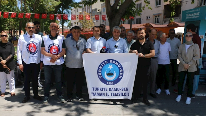 Türkiye Kamu Sen Adıyaman Şubesi üyelerinin katıldığı tepkide toplanan üyeler adına açıklama yapan Türkiye Kamu Sen Adıyaman Şube Başkanı İrfan Tokur, maaşların enflasyon karşısında eridiğini söyledi.